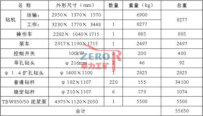 LM-200型反井鉆機主要部件尺寸及重量 表3-1
