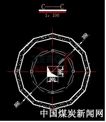 四川古敘煤田公司下屬川南煤業(集團)公司魯班山北礦三采區大型煤倉設計工程量為30米深,煤倉容量660m3,煤倉容煤量可達1000T(圖示)。魯班山北礦過去在煤倉施工中采用普通反井法施工工藝,勞動強度高、安全威協大,掘進速度慢、浪費坑木。通過調查研究,三采區煤倉利用反井鉆機鉆孔技術配套施工,先施工反井1.2m小直徑斷面掘進,待貫穿后自上而下擴刷至設計斷面,再對煤倉進行澆灌。實踐證明:這種方法具有機械化程度高、勞動強度低、確保安全生產,在加快施工進度、提高單進水平和節約材料成本等方面取得了良好效果,其經濟效益和安全效益顯著。